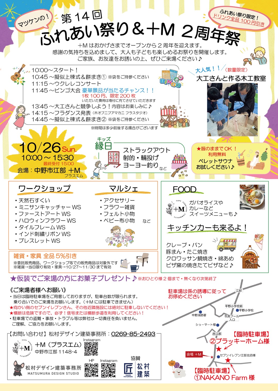 今週末は、そんなオーナー様と地域の皆様に楽しんでいただくため、+M(プラスエム)にてふれあい祭りを開催します。