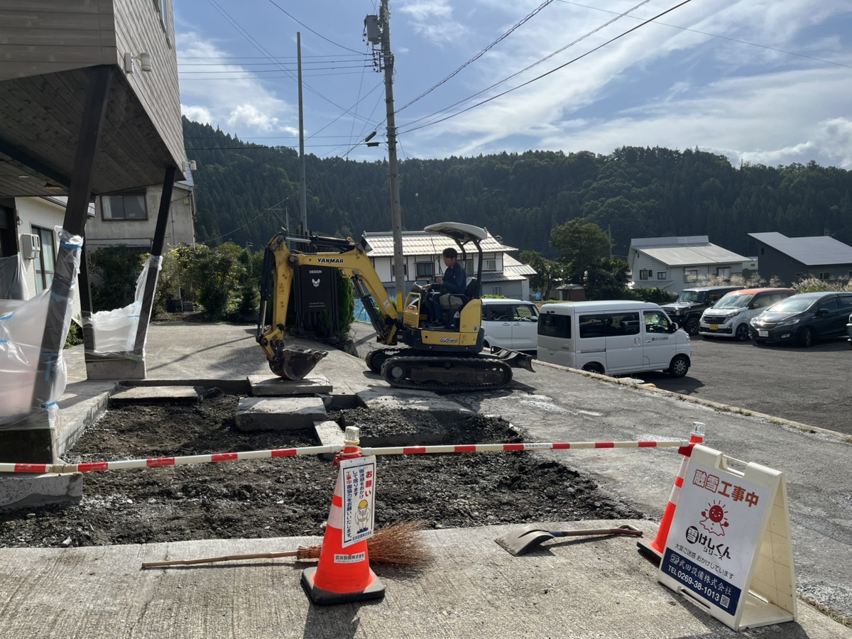 これからの雪の季節の準備として、事務所の融雪工事が、始まりました。