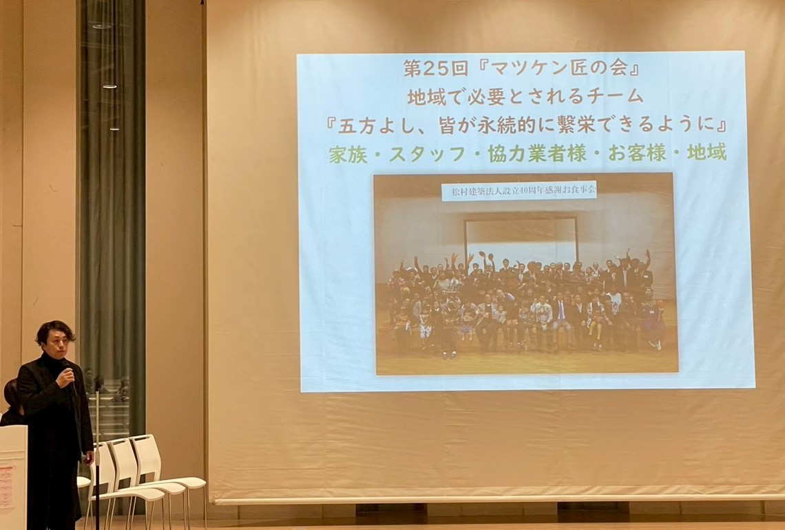 年に2回、業務に関する勉強会と匠の会、マツケンがより成長するためにどうするか、知恵をお借りする場であります。