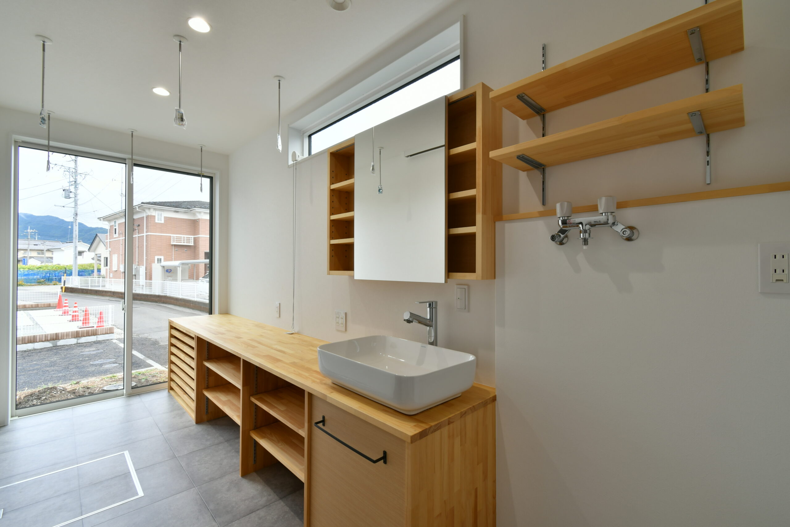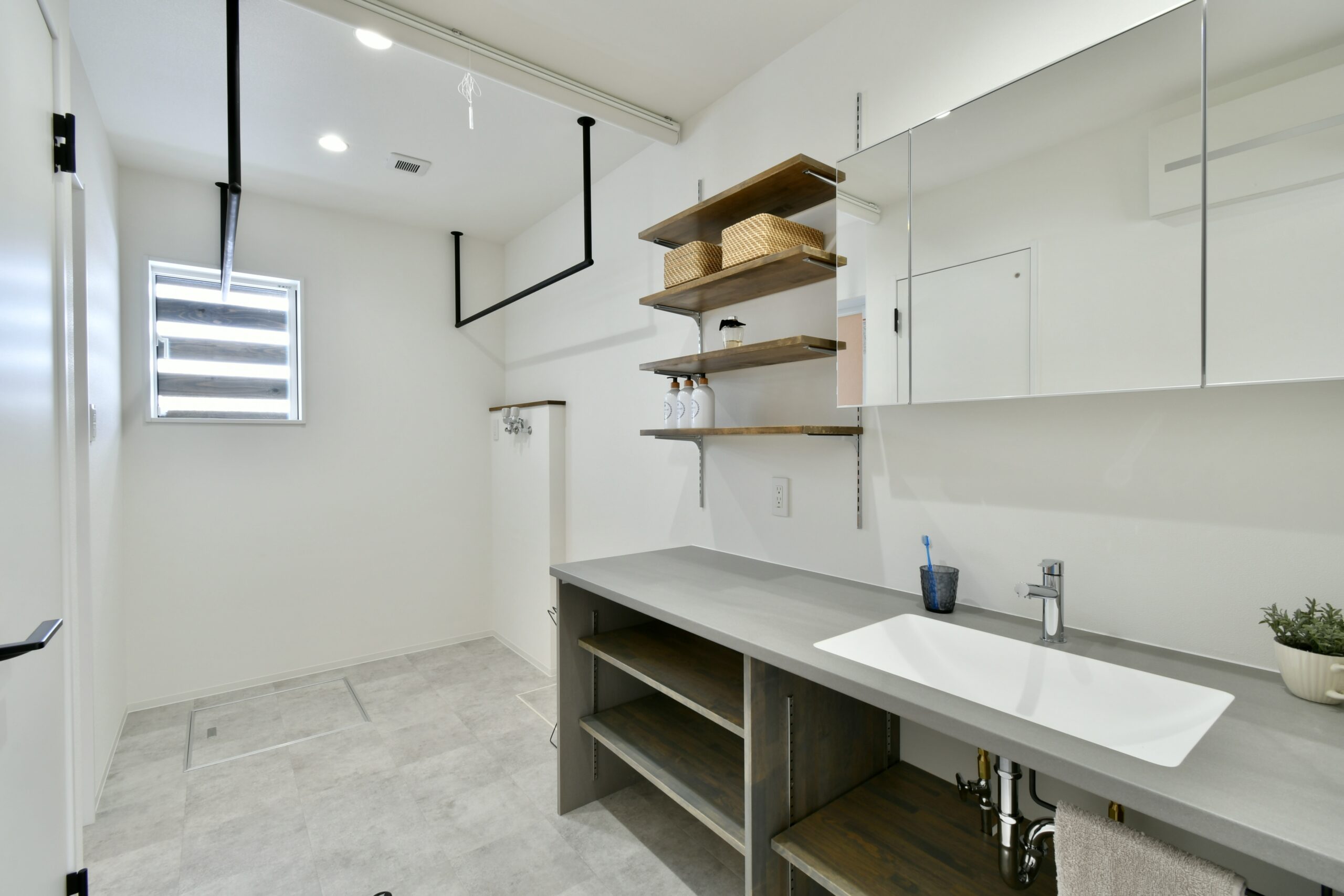 洗う → 干す → 収納までを一連で行える「ハウスワークスペース」です。
