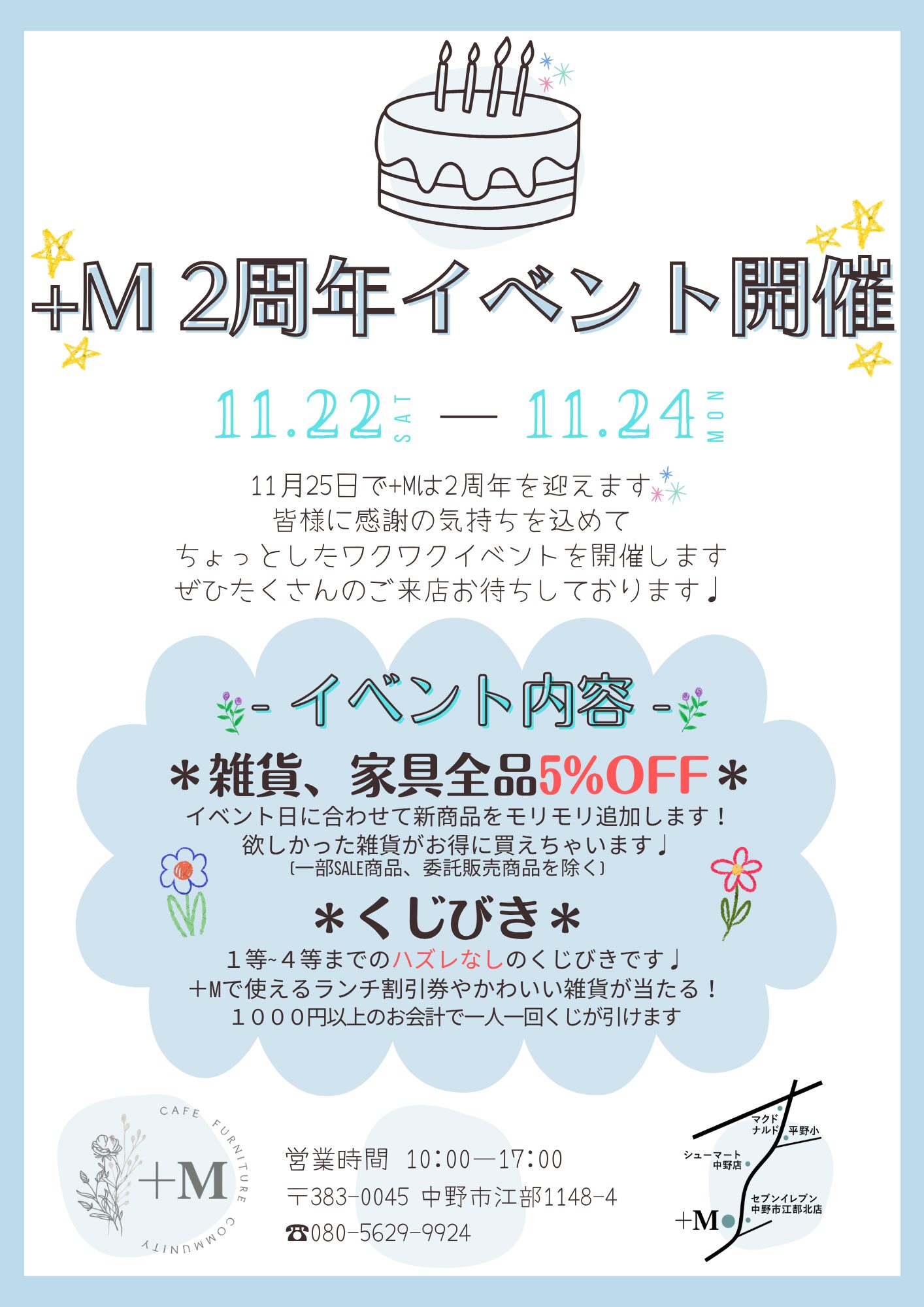 さて、今月の11月25日で+Mはオープンから2周年を迎えます!