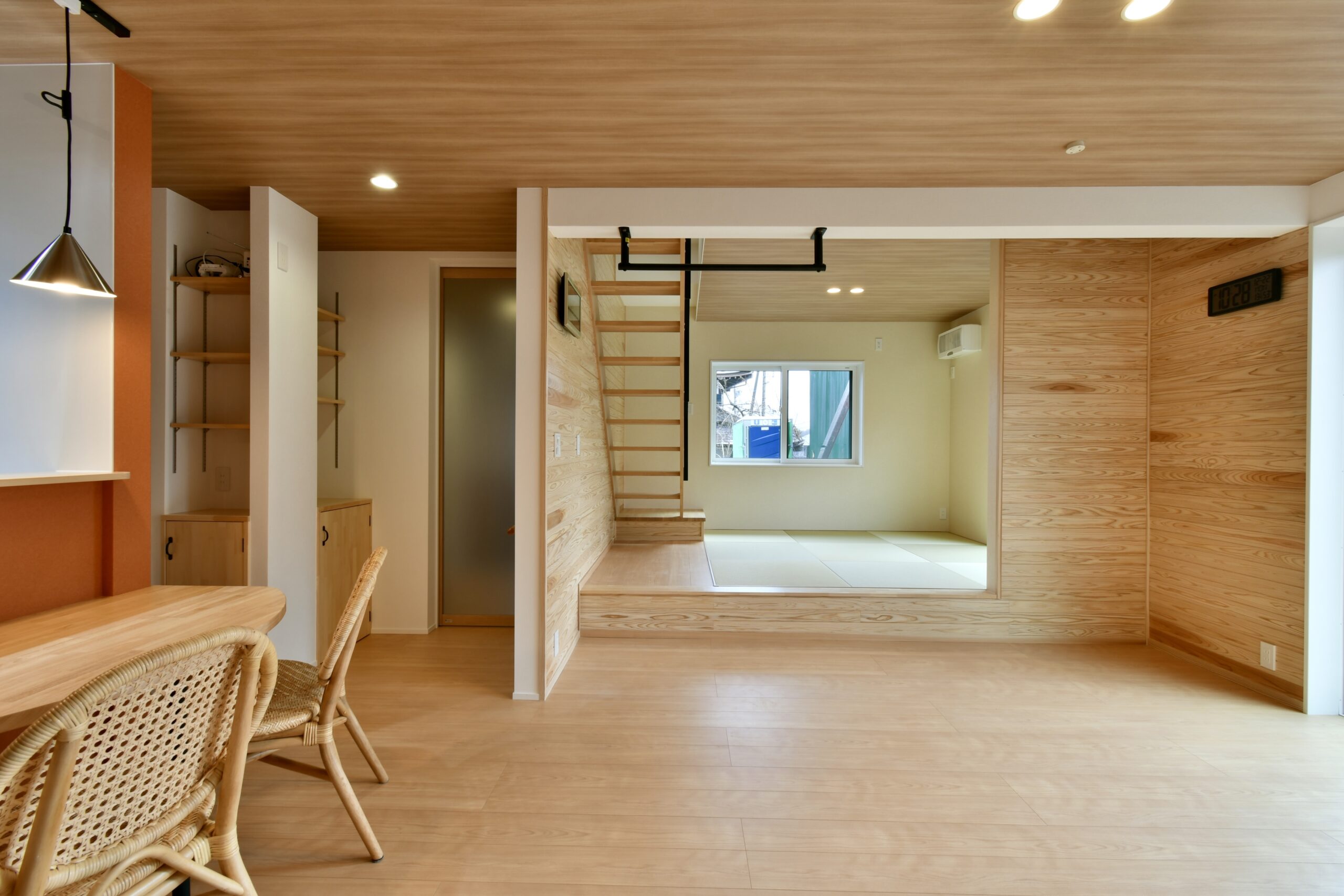 板張りの壁やアクセントクロスなど